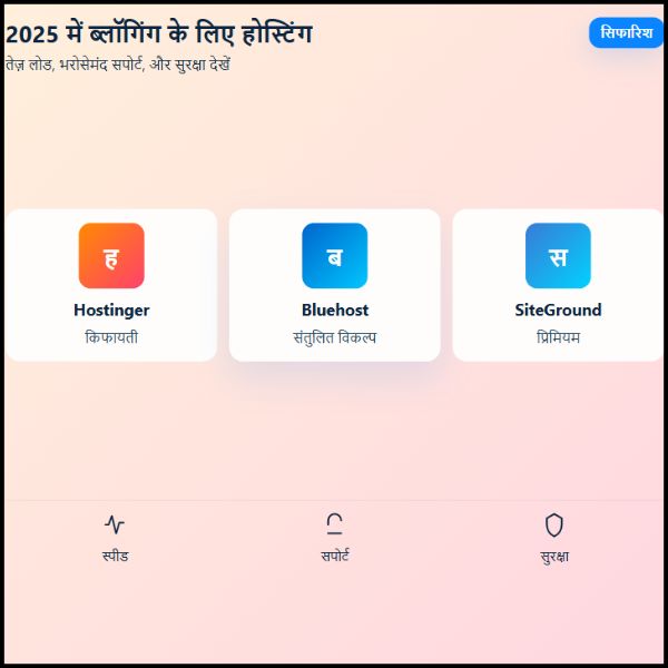 - Speed और Uptime – हमेशा वही Hosting चुनो जो 99.9% Uptime दे और Loading Fast हो।