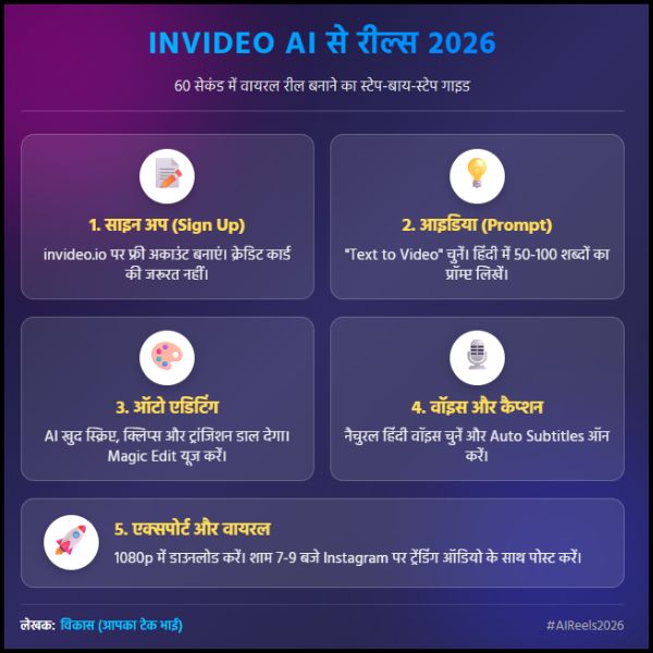 InVideo AI से 60 सेकंड में रील्स बनाना सीखो: नमस्कार मेरे प्यारे कंटेंट क्रिएटर्स और रील्स लवर्स , मैं विकास बोल रहा हूँ – सीतापुर के एक छोटे से गाँव का लड़का जो 2023 से YouTube और Instagram पर रील्स बना रहा हूँ। पहले तो घंटों एडिटिंग में निकल जाते थे, लेकिन 2025 में InVideo AI ने मेरी जिंदगी बदल दी। अब 60 सेकंड में प्रोफेशनल रील्स तैयार, 2026 में ये टूल और स्मार्ट हो गया है – हिंदी वॉइसओवर, ऑटो कैप्शन, ट्रेंडिंग म्यूजिक सब AI से। आज फुल स्टेप-बाय-स्टेप गाइड दे रहा हूँ, जैसे अपने छोटे भाई को सिखा रहा हूँ। फ्री प्लान से शुरू करो, कोई टेंशन नहीं।