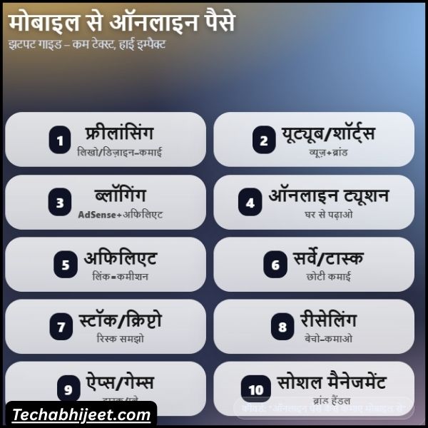असल में, अगर आपके पास एक स्मार्टफोन और थोड़ी समझदारी है तो आप बिना किसी बड़े निवेश के ऑनलाइन कमाई शुरू कर सकते हैं। सवाल ये है कि आखिर ऑनलाइन पैसे कैसे कमाए मोबाइल से? तो चलिए भाई, मैं आपको आसान भाषा में पूरी बात बताता हूँ।